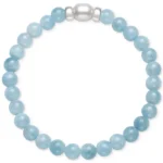 Milky Aqua & Cultured Freshwater Pearl Stretch Bracelet in Sterling Silver